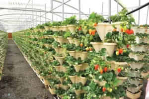 - نظام البرج الهرمي: خيار رائع وعصري، يجمع بين الديكور الجميل والإنتاج الفعال. يتكون من طبقات عمودية (24 شتلة للبرج) وهو مثالي جداً لزراعة الفراولة، نباتات الزينة، والورقيات.